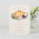 Este design de outono apresenta flores e folhagem de outono num cesto de abóbora com queda quente e cores neutras.