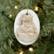 Nossos primeiros enfeites de natal com um bolo de casamento branco. Personalize com seu próprio texto se você deseja.