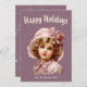 Nostalgic Girl in Pink Holiday Card. Traga os velhos bons tempos de volta com esta ilustração vintage e nostálgica de uma garota de rosa com flocos de neve dançantes no ar. Personalize a frente com seu texto e assinatura. O dorso tem uma cor sólida com alguns flocos de neve. Escreva uma saudação aqui depois de gostar.