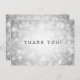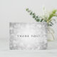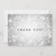 Elegante design de "Nota de Agradecimento" de casamento de inverno com o tema Silver Winter Wonderland (flocos de neve e brilhos), nomes personalizados e data. Impressione sua família e amigos com este design moderno e sofisticado.