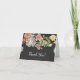 Linda nota de agradecimento em lousa com flores brilhantes.