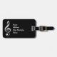 Nota de música sobre a etiqueta personalizada personalizável de bagagem negra / viagem por Heard_, e 369. A nota musical do clef de árvore apresenta um pequeno padrão branco e cinza. A inscrição é branca.
