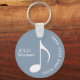 Nota musical branca gráfica num chaveiro azul (cor personalizada), personalizada com o seu próprio nome e texto