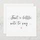 Anuncie sua gravidez com este cartão plano moderno e minimalista. A frente lê "Apenas uma pequena nota a dizer", criando uma doce surpresa, você pode personalizá-la com uma mensagem como "Estamos esperando!" ou "Você vai ser avô" junto com a data de vencimento do seu bebê. Projetado cuidadosamente com tipografia limpa. Um na moda e uma simples manutenção que eles sempre lembrarão. Ideal para um primeiro bebê revelar ou uma doce surpresa familiar.