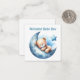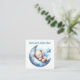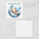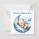 Garoto Bonito Dormindo em um cartão postal de lua crescente. Bem-vindo ao novo menino. Cartão de anúncio de nascimento.