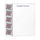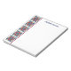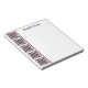 Personalize este bloco de anotações de tamanho agradável impresso com uma borda de colcha de estilo de bloco de whirlpool e seu nome ou outro texto. O padrão é vermelho, azul e cores bronzeadas. Espaço escrevendo generoso do vazio para todas as suas listas, pequenos esboços ou outras notas diárias. Bonito presente personalizado para um entusiasta de colagem ou costura.