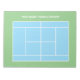 bloco de notas de layout da tênis para treinador. Folha de notas de memória com as dimensões de design de tênis. Escritório e material escolar para aulas. Grande dimensão para notas de fazer sobre táticas, melhoria da estratégia dos jogos, técnicas, movimento dos jogadores em solteiros e duplas, direção do serviço, posições judiciais, etc. Materiais personalizados dos clubes de tênis para treinadores desportivos, professores, treinadores, capitães, equipes de crianças, ligas, etc. Ideia útil de presente de aniversário para ensinar crianças e adultos. Cores de fundo personalizáveis. Exemplo verde e azul.