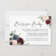 Boho Burgundy e Blush floral Books para Cartão de Bebê. Este Cartão é caracterizado por rosas e flores boho burgundy e blush com duas fontes modernas de alta classe que moldam as tendências dos eventos festivos atuais e futuros.