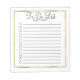 Branco personalizado com quadro dourado: bloco de anotações alinhado com quadro "Para fazer" com caixas de seleção. Texto, fonte, tamanho da fonte, cor e posicionamento são completamente personalizáveis.