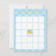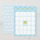 Adicione diversão ao seu chá de bebê com este cartão de bingo de pato de borracha azul! Apresentando sotaques amarelos claros, patos e azuis suaves, este cartão de jogo divertido é perfeito para manter os hóspedes comprometidos com a sua celebração com o tema do pato. Um toque de festa doce e interativo.