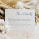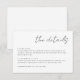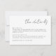 Crie seu próprio cartão personalizado minimalista personalizado. Basta inserir suas informações sobre Recepção e Alojamentos. Para fazer alterações avançadas, selecione a opção "Clique para personalizar mais" em Personalizar este modelo.