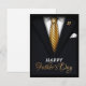 Este cartão do Dia dos Pais exala sofisticação e apreço pelo homem notável em sua vida. O cartão apresenta uma imagem nítida de um terno preto bem cortado, completo com uma gravata dourada luxuosa. O centro é uma mensagem sincera em texto dourado brilhante que diz "Feliz Dia dos Pais."