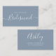 Proposta de Bridesmaid da Caligrafia Azul Moderna e Minimalista. Cartão de pedido e convite do partido de noiva. Apresenta a fonte de moda e na moda e cor azul empoeirada pastel.