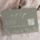 Cartão de enclausuramento de código QR de confirmação de casamento com flores silvestres, floral em verde sage. O texto pode ser personalizado simplesmente com o site do seu casamento, código QR escaneável e mensagem que manterá seus convidados informados sobre o seu dia especial que se aproxima.