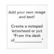 Adicione seu próprio texto e imagem a este bloco de notas. Excelente para listas de tarefas, mensagens telefônicas, memorandos, etc.