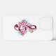 Uma clave cor-de-rosa com flores de cereja japonesa, delicadas e detalhadas, contra fundo branco pintado com tinta azul clara. Sakura cor-de-rosa.