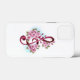 Uma clave cor-de-rosa com flores de cereja japonesa, delicadas e detalhadas, contra fundo branco pintado com tinta azul clara. Sakura cor-de-rosa.