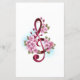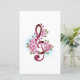 Uma clave cor-de-rosa com flores de cereja japonesa, delicadas e detalhadas, contra fundo branco pintado com tinta azul clara. Sakura cor-de-rosa.