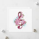 Uma clave cor-de-rosa com flores de cereja japonesa, delicadas e detalhadas, contra fundo branco pintado com tinta azul clara. Sakura cor-de-rosa.