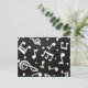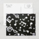 Fundo preto com notas musicais livres e fluentes cobrir esta carta de notas de tendência com joias correspondentes e gravata masculina.