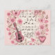 Cartão postal com ilustração em estilo romântico antigo. Notas musicais, flores, borboletas e um violão. Uma vibração sentimental adorável.