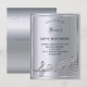 Uma carta moderna de 50ª convite de aniversário. Um fundo metálico prateado falsa, com uma imagem e notas musicais, letras negras coloridas. Personalize e adicione um nome e informações da parte. Fundo: fundo falso prateado, design postal. Dica: Se você não quiser que pareça um cartão postal, clique em personalizar, vá para o verso e remova o divisor e o carimbo de posto.
