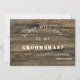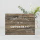 Cartão de Padrinho de casamento moderno, rústico, com fundo de madeira e utilização de tipografia moderna de blocos. Capacidade de alterar todas as seções de texto de acordo com as suas necessidades.