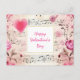 Cartaz dia de os namorados com um design elegante e nostálgico. Folha de música decorada com um grande coração cor-de-rosa e rosas rosa e flores silvestres ao redor das bordas.
