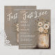 Nothing Fancy Just Love Floral Mason Jar Wedding Invitation with RSVP information included for a less formal affair, so you don't nee a separate R.S.V.P. Card. Embrace a charming rustic aesthetic for your special day with this "Just Love" wedding invitation. Featuring a beautiful watercolor floral arrangement spilling from a vintage mason jar against a weathered wood background, this invitation sets a warm and inviting tone for your rustic country celebration. The "Nothing Fancy" tagline, and the elegant script for "Just Love" perfectly capture a relaxed yet romantic feel. It's an ideal choice for couples planning a barn wedding, farmhouse celebration, or any rustic-themed event seeking a touch of natural beauty and heartfelt simplicity.