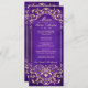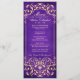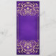 Esses menus elegantemente finos de casamento, em tons deslumbrantes de ouro pálido e roxo de beringela sumptuosa, são uma mistura saborosa de sensibilidades de Art Nouveau e Vitoriana, com um rico de lindas espirais e delicadas obras de rolagem, e texto em escrita formal e serif clássica e fontes de bloqueio. O convite para o casamento é completamente personalizável. Personalize a parte traseira com suas informações de recepção e/ou RSVP para economizar custos em RSVP e cartões de recepção separados, ou exclua esses campos para deixar o vazio traseiro.