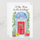 Esta nova casa de aquarela para o cartão de anúncio de feriados com uma porta vermelha com arbustos e árvores de pinheiro, presentes e uma coroa, e o seu nome familiar acima da porta seria perfeito para enviar aos seus amigos e família quando se mudasse para uma nova casa antes das férias. O sentimento no verso é personalizável para que você possa enviar um cartões de natal exclusivo para você. Obtenha o suficiente para que todos que você conhece e ama tenham seu novo endereço e número de telefone. Ficarão tão animados com a sua grande jogada!