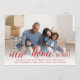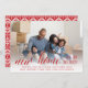 Cartão com fotos festivo de férias anuncia sua mudança de endereço com "nova casa para os feriados" como uma vibrante camada vermelha de texto. Personalize com uma foto da família, seu novo endereço, saudação personalizada e nomes. Cartões que se revertem a um padrão de blusa nórdico em branco a vermelho.