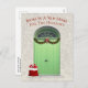 Esta design de Natal apresenta portas duplas verdes com um paládio de janela para uma nova casa para a mensagem de feriado. Há uma vila verde abaixo da janela e uma bolsa de Papais noeis cheia de presente nos degraus. Personalize o texto na parte frontal e traseira, remova qualquer texto ou clique em personalizar para selecionar um estilo de fonte, tamanho e cor diferentes.