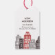 Cidade retrógrada com prédios de desenho em vermelho e preto para uma nova etiqueta de endereço muito exclusiva. ★ Por favor, verifique a coleção correspondente para COORDENAR ITENS.¨¨¨.