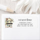 Rótulo de endereço com uma casa colorida de creme de alta qualidade com árvores. Fácil de personalizar com seu novo endereço. Visite o nosso compro para ver toda a nossa coleção de anúncios encantadores de mudança de casa.