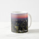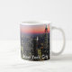 Um panorama bonito da noite disparou da Nova Iorque em uma caneca de café.