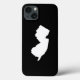 A forma do estado de Nova Jersey em preto e branco. Você pode alterar a cor do plano de fundo ou adicionar uma mensagem de texto de souvenir personalizada.