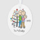 Um adorável ornamento acrílico de vara de Natal apresenta um adorável novo papai de vareta e mãe segurando uma menina em um cobertor rosa e o gato da família em frente a uma árvore de férias decorada. Ele também tem uma área que você pode adicionar seu nome de família antes de fazer o pedido. O ornamento apresenta o mesmo design com uma área que você pode facilmente personalizar para dizer Natal de 2014 ou o ano atual. Esta bonitinha de palito de Natal, o ornamento acrílico será apreciado por anos!