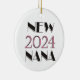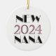Novo ornamento datado de Nana 2024 com textos cor-de-rosa e preto, um presente de excelente para a nova nana de um nascer bebê em 2024.