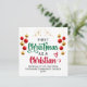 Na moda PRIMEIRO NATAL COMO UM NOVO Cartão de Acreditação CRISTÃO com TEXTO E DATA PERSONALIZÁVEIS. A design mostra o verde de Natal e a tipografia da escrita vermelha de Natal com borras vermelhas e douradas penduradas e estrelas ouros no centro. Um belo cartão de saudação para um novo crente cristão. Você pode PERSONALIZAR O TEXTO na frente e personalizar sua mensagem no verso. Ideal como um cartão de Natal da igreja para novos crentes celebrando seu primeiro Natal cristão.