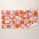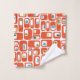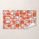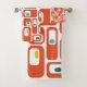Este conjunto de toalhas tem uma design de retângulos laranja modernos do século médio com retângulos brancos com círculos azuis ou verdes.