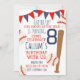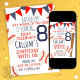 Um convite para festas de aniversário com tema de baseball com impressões de beisebol com estilo vintage em um esquema de cores vermelho, azul e branco. Celebre seu grande dia com este convite de festas de baseball personalizado!