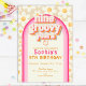 Celebrar Nove Anos de Groovy com este convite de aniversário de margarida, inspirado na retro-inspiração! Com matizes cor-de-rosa pincelados, arco-íris pastel e flores de vintagem caprichosa, este convite ao estilo "boho" é perfeito para a vossa aniversariante. Completamente personalizável com os detalhes do seu partido, ele define a cena para um cheio de comemorações de na moda 9º aniversário do poder das flores, luz do sol e vibrações do rancho. ✨ Destaques: ・ design editável para o convite para o 9º aniversário ・ Recursos de flores retro-margaridas e gráficos do arco-íris pastel ・ Excelente para festas de moça ranhosa, aniversários de vassoura ou temas de poder de flor ・ Coordena-se com decoração de margarida e de partido arco-íris