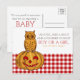 Cartão-postal de lançamento do bebê Pumpkin Owl & Gingham. Este anúncio tem as palavras, "Uma Coruja e um Hoot e um Pumpkin para Boot, Boy ou uma Girl que não contaremos". O fundo tem um padrão Gingham neat que adiciona ao design da fazenda, excelente de usar para que seus entes queridos saibam que uma nova abóbora está a caminho.
