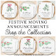 Você está se mudando para uma nova casa nesta estação festiva? Este cartão postal de anúncio em movimento botânico permite que familiares e amigos saibam seu novo endereço. É decorado com água-colorido, fita vermelha e feriados felizes na tipografia de na moda. Facilmente personalizável. Use a Ferramenta Design para alterar o tamanho, o estilo ou a cor do texto. Original Watercolor © Michele Davies.