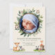 Bichos de Woodland Novo Cartão de Aniversário de Bebê! Cartões de nascimento de bebês de animais de bosque bonitos, com ilustrações de um pomo, raposa, guaxinim, rato, gambá e coruja. Personalize-o com a fotografia do seu bebê e as estatísticas de natalidade de forma fácil e rápida.