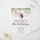 Informe familiares e amigos e deseje Feliz Natal no mesmo cartão com nosso cartão postal "Casa Nova para as Festas". O design apresenta alguns ramos de árvore de Natal e enfeites pendurados com laços elegantes. Personalize com suas informações frente e verso.