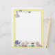 Esta cartola apresenta vários bebês e um carrinho no fundo, uma cegonha que entrega um bebê no canto superior esquerdo e uma borda amarela.