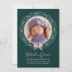 Este doce anúncio de natal é uma maneira adorável de compartilhar suas grandes notícias. O cartão com fotos de férias inclui uma fotografia circular do recém-nascido enquadrada por uma coroa verde, puxada pela mão, com bagas e um arco. Personalize com os detalhes da sua foto e nascimento.