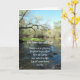 Esta adorável carta de batismo adulto mostra uma fotografia de um rio bordado por carvalhos e folhagem verde. Um belo céu azul mostra acima da linha da árvore e reflete na água que flui abaixo. As palavras na frente deste cartão dizem, "No seu Dia Especial - Seja uma nova criação. Por fé, se justifique. O aumento do Cristo foi criado para a vida. Que todo seu coração seja Dele." A mensagem dentro à esquerda mostra o Salm 51:10 que diz, "Crie em mim um coração limpo, Ó Deus, e renove um espírito direito dentro de mim." A mensagem dentro do lado direito diz: "Que a alegria que você sente hoje esteja com você sempre no seu novo caminho com o Senhor. Parabéns no batismo."